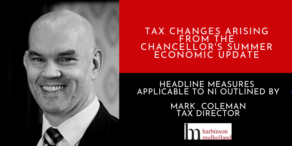 Chancellor, Rishi Sunak, has provided a summer economic update in light of the Covid-19 pandemic. The main tax changes announced that apply to Northern Ireland are as follows: